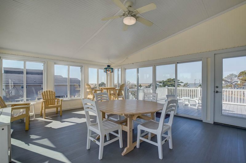 A little slice of heaven awaits your family at this charming coastal cottage outfitted for families that love each other, the beach, and the outdoors. The sunroom has a table for games and opens to two decks, one on the front and one on the back. There is plenty of space to relax and spread out with a good book or catching up with loved ones. The dining table seats 12 so the whole family can eat together! There is a deeded access to get to the canal for launching your own kayaks to explore the beautiful Back Bay!