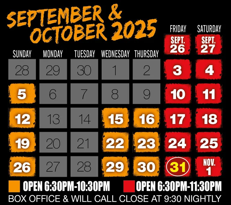Experience the 2024 all-new Scream Team and Extreme Halloween featured events! Our cast of blood-curdling characters (always at a safe distance) appear when you least expect them for a night of spine-tingling terrors sure to make you scream! If you dare, venture into our haunted cornfields or chance what awaits you in the farmโs wicked woods. Be very scared because spectral spooks and howling haunts lurk around every corner.
